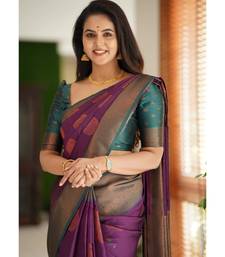 Purple green soft art silk banarasi jacuard work designer party wear saree with unstitched blouse piece
