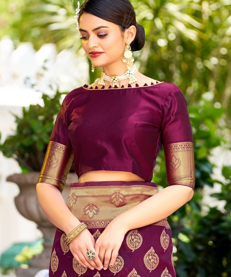 | Product Name | Purple Soft Silk Blend Banarasi Jacuard Work Designer Party Wear Saree With Unstitched Blouse Piece | |