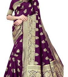 Purple soft silk blend banarasi jacuard work designer party wear saree with unstitched blouse piece