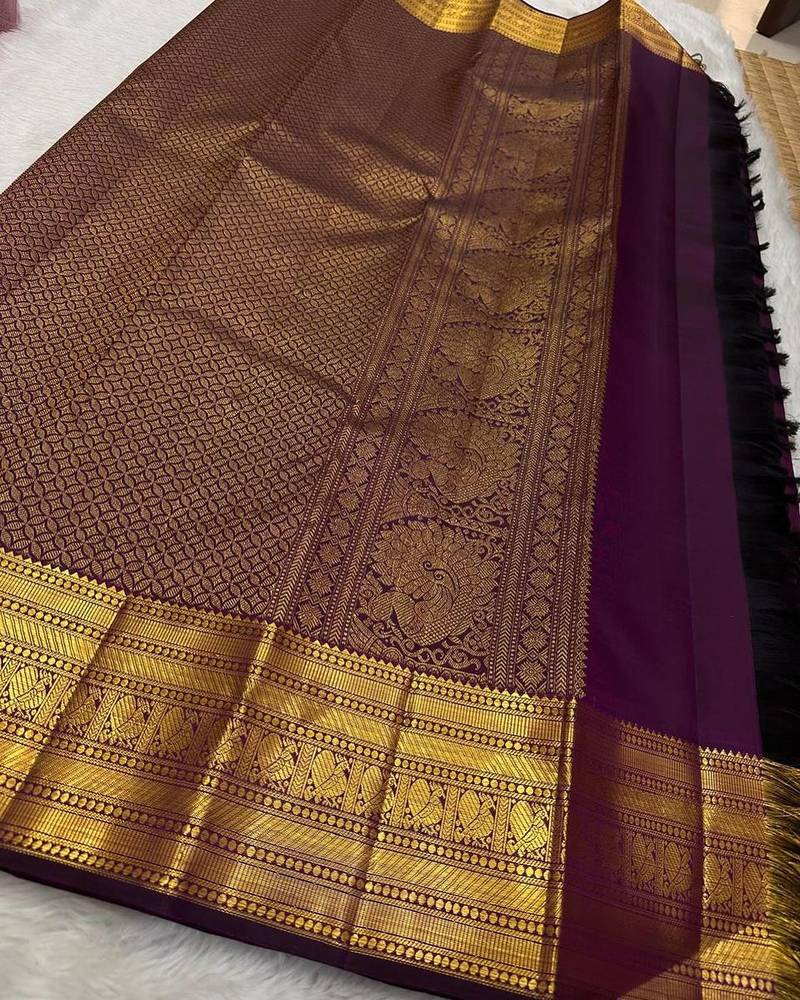 Product Name Purple Soft Silk Blend Banarasi Jacuard Work Designer Party Wear Saree With Unstitched Blouse Piece