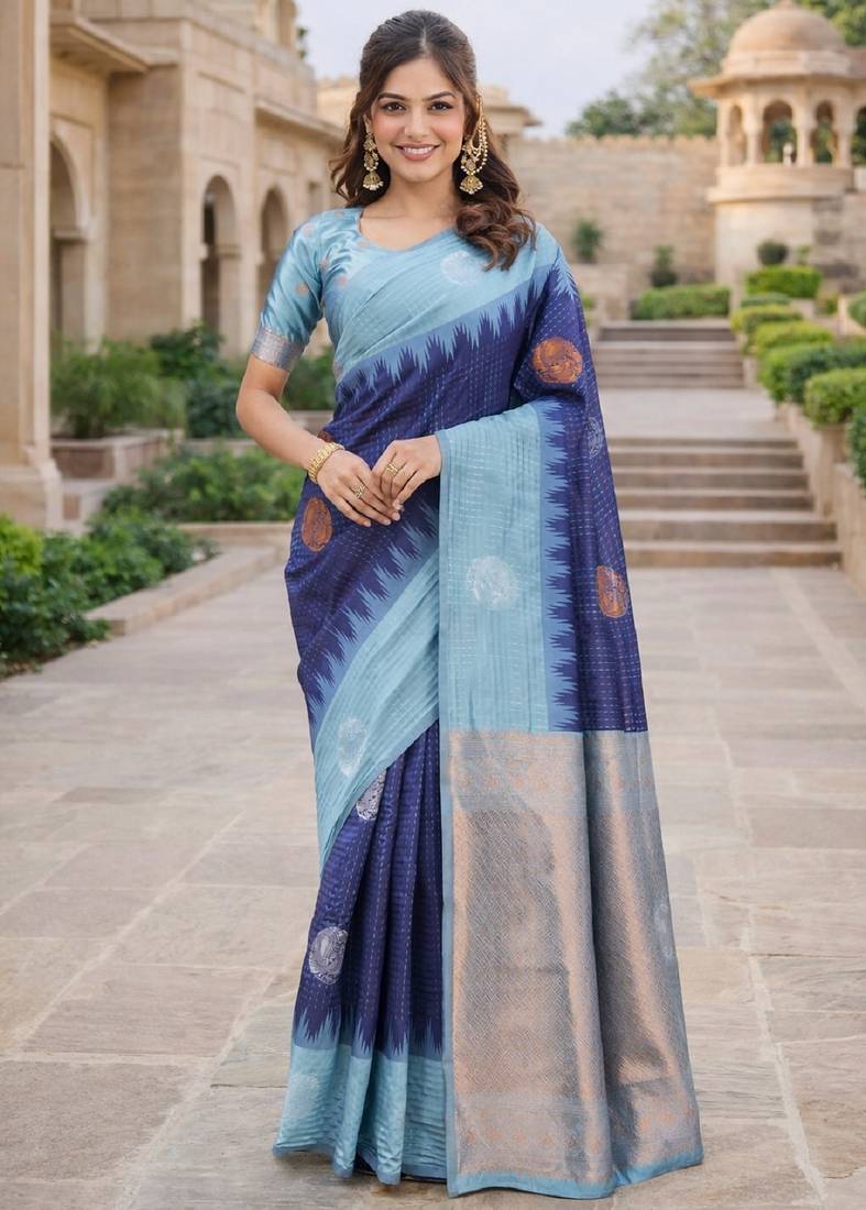 | Product Name | Rama Blue Silk Blend Jacuard Work Designer Party Wear Saree With Unstitched Blouse Piece | |