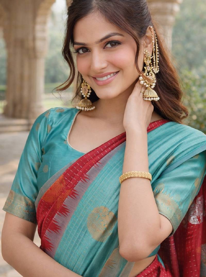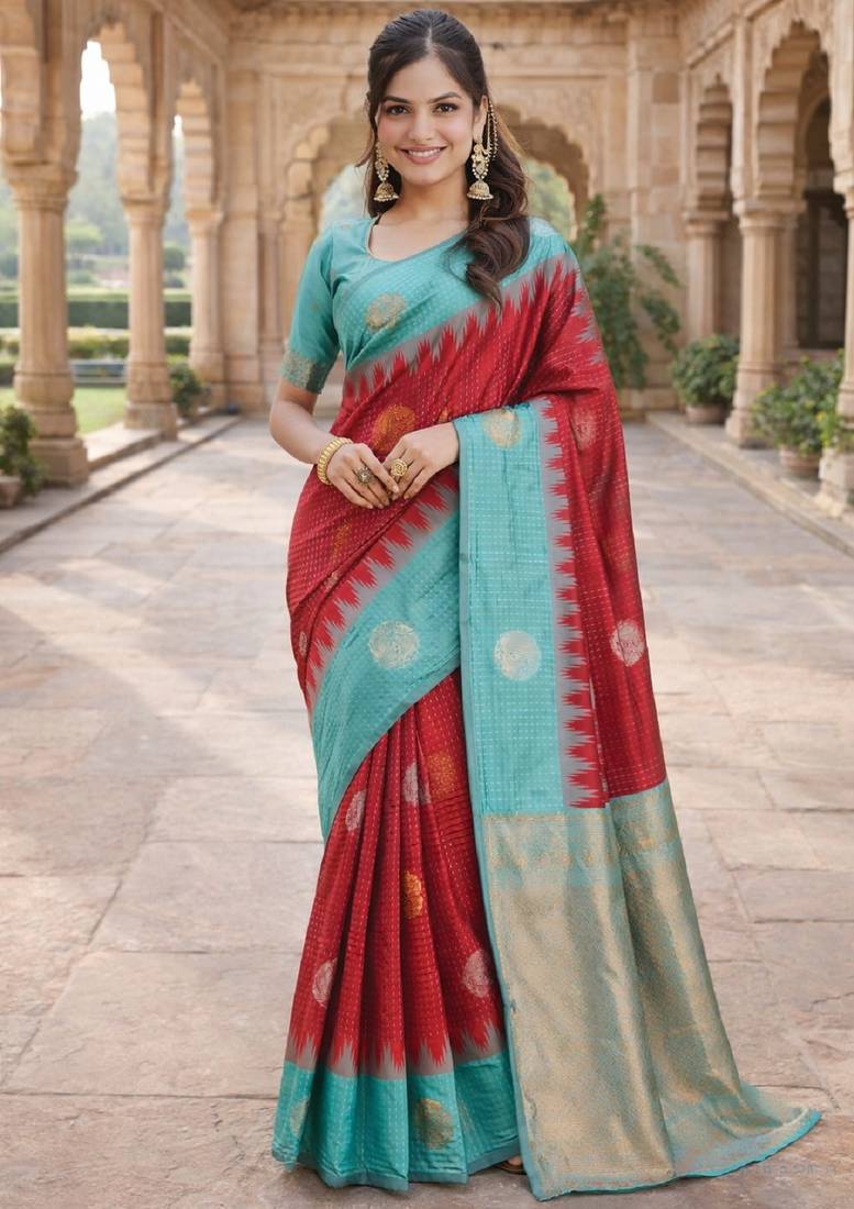 | Product Name | Rama Red Silk Blend Jacuard Work Designer Party Wear Saree With Unstitched Blouse Piece | |