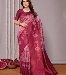 Rani pink soft art silk banarasi jacuard work designer party wear saree with unstitched blouse piece