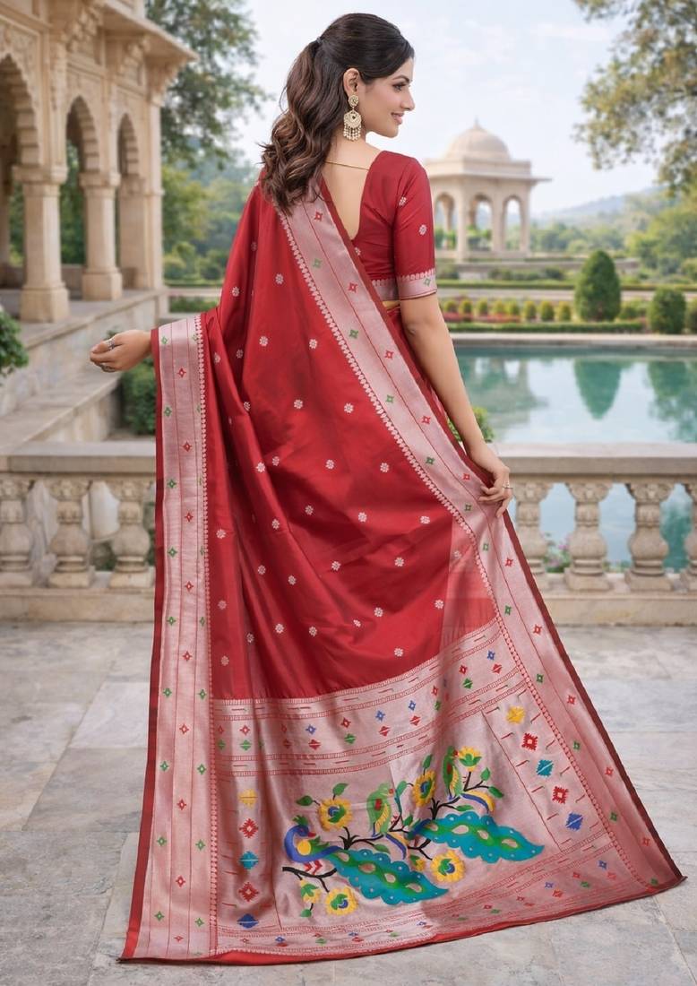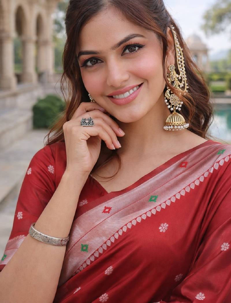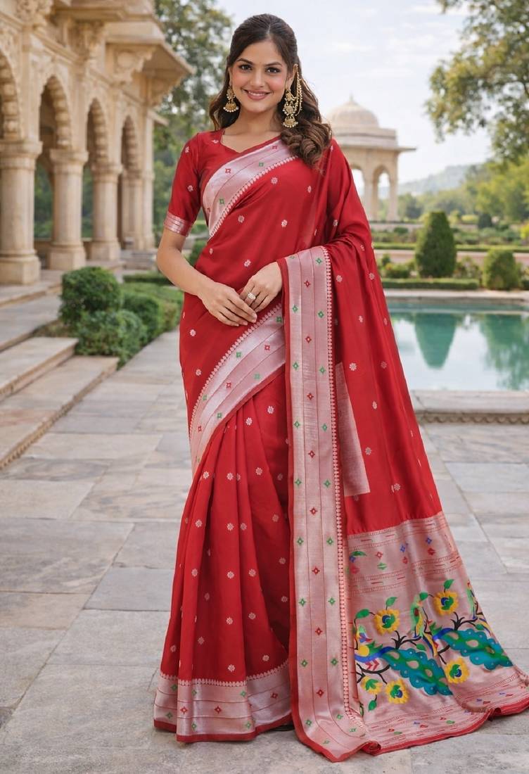 | Product Name | Red Silk Blend Jacuard Work Designer Party Wear Saree With Unstitched Blouse Piece | |