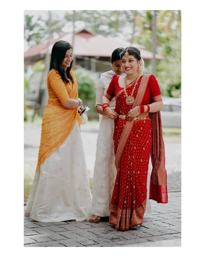 | • | Saree | : | Color- Red / Fabric- Banarasi Silk |