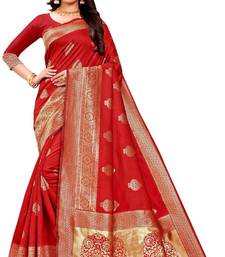 Red soft art silk banarasi jacuard work designer party wear saree with unstitched blouse piece