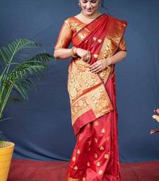 Red soft silk blend banarasi jacuard work designer saree with blouse