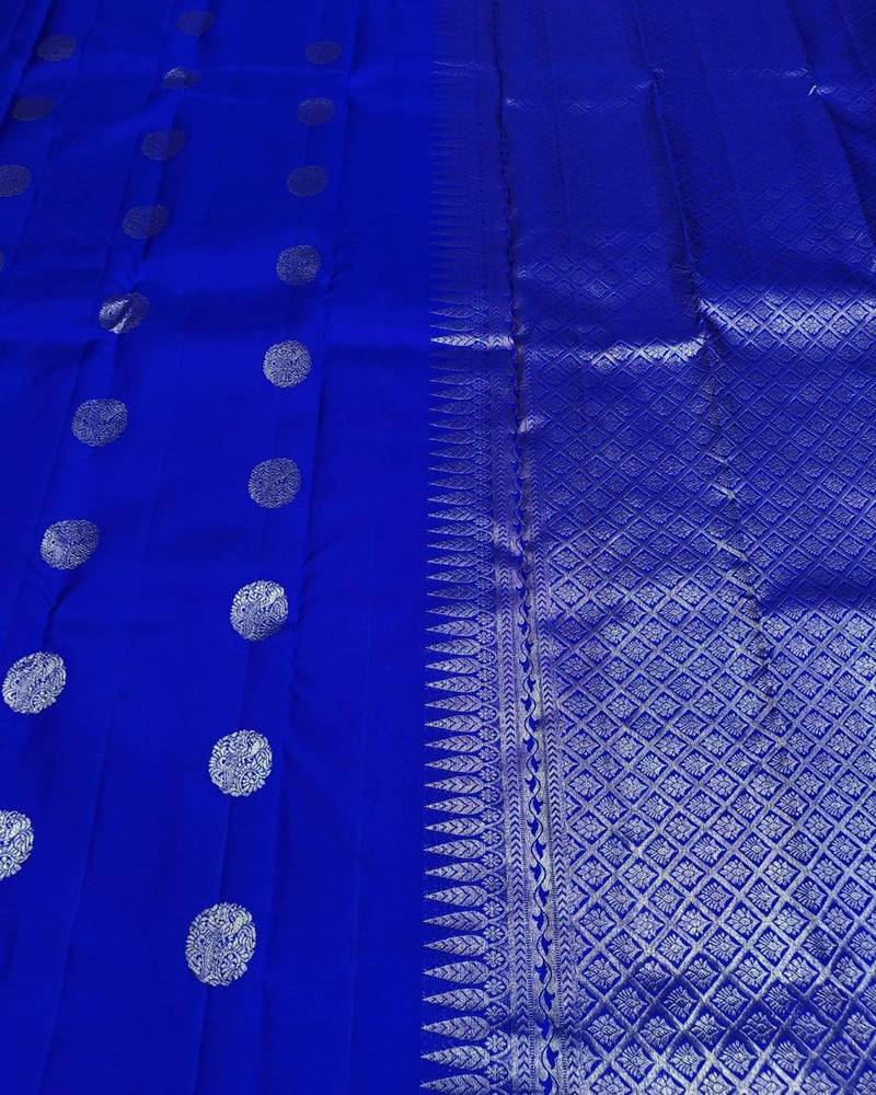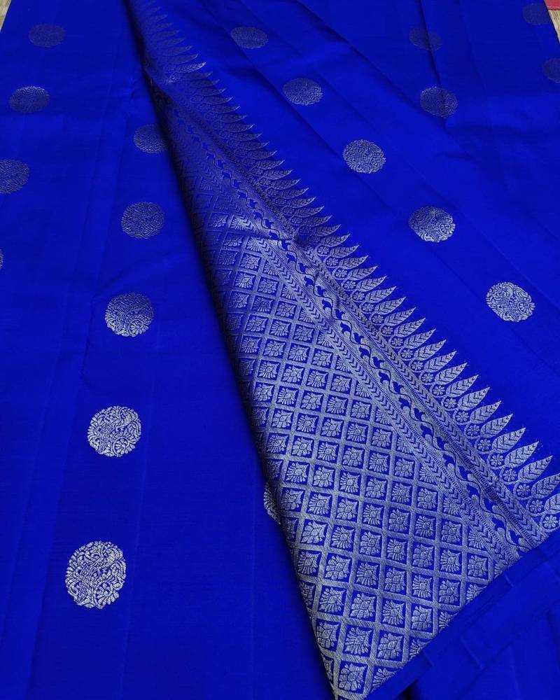 Product Name Royal Blue Soft Silk Blend Banarasi Jacuard Work Designer Party Wear Saree With Unstitched Blouse Piece