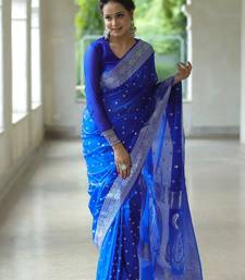 Royal blue soft silk blend banarasi jacuard work designer party wear saree with unstitched blouse piece