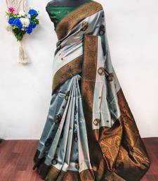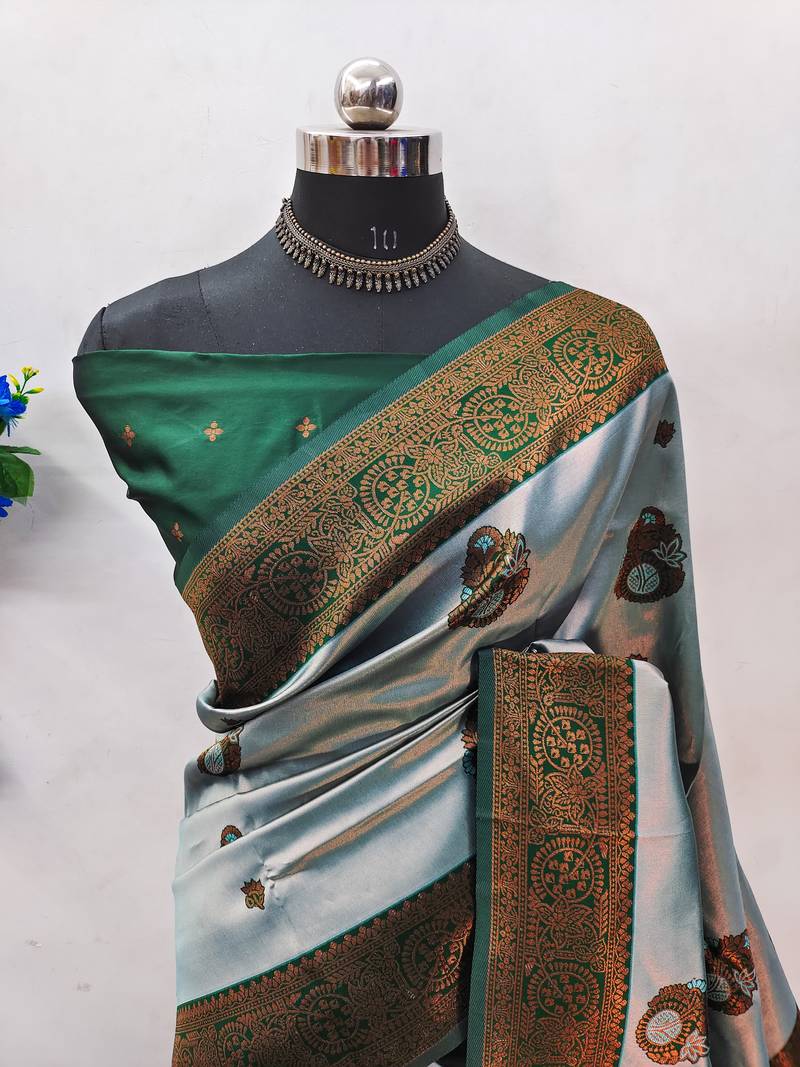 Sea green soft silk blend banarasi jacuard work designer party wear saree with unstitched blouse piece