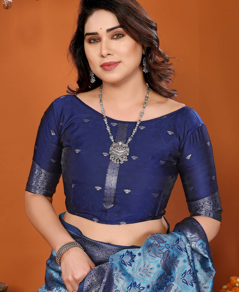 | Product Name | Sky Blue Soft Art Silk Blend Banarasi Jacuard Work Designer Party Wear Saree With Unstitched Blouse Piece | |