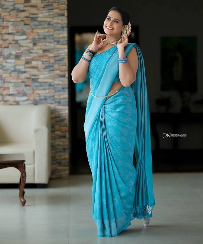 | • | Blouse | : | Color- Sky Blue / Fabric- Banarasi Silk |