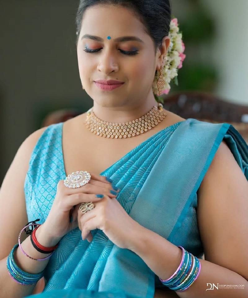 | • | Saree | : | Color- Sky Blue / Fabric- Banarasi Silk |