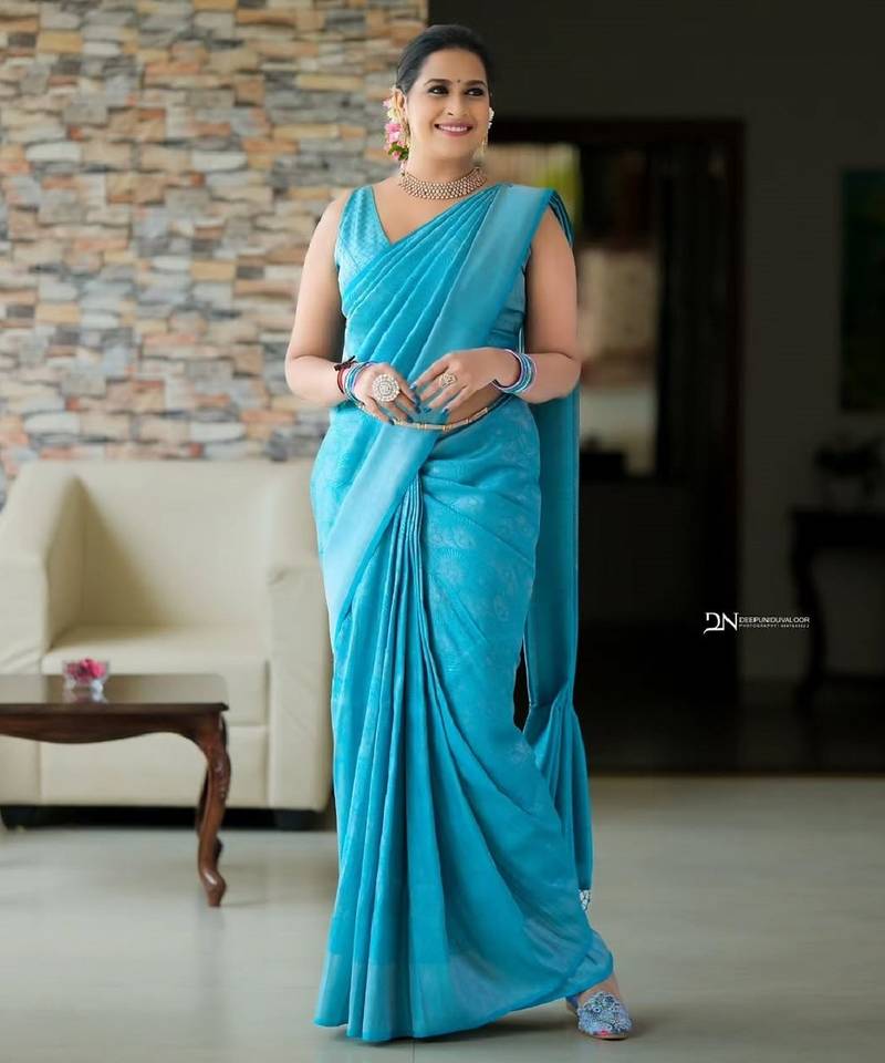 Sky blue soft silk blend banarasi jacuard work designer party wear saree with unstitched blouse piece