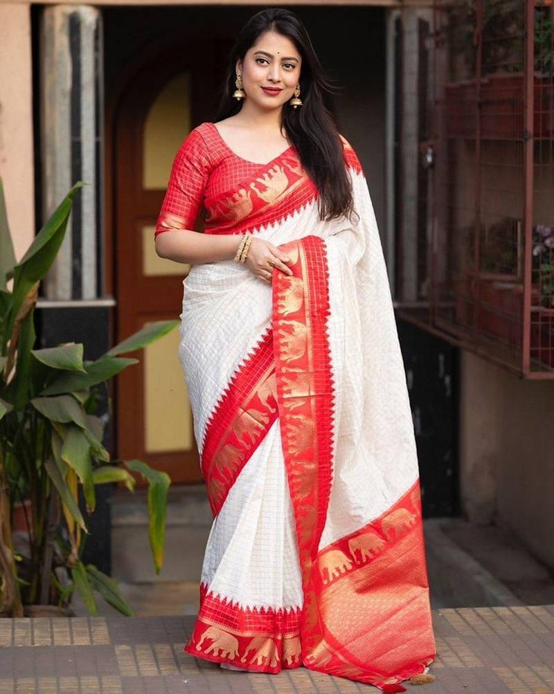 White soft silk blend banarasi jacuard work designer saree with blouse