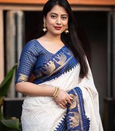 White soft silk blend banarasi jacuard work designer saree with blouse