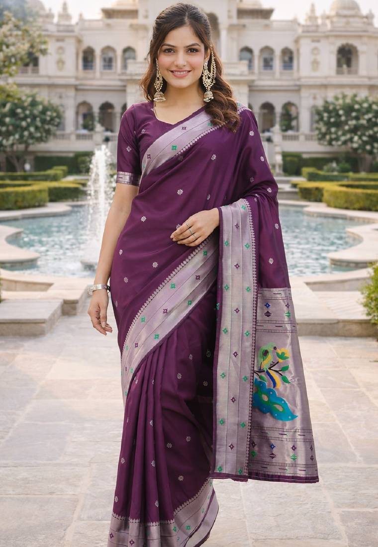 | Product Name | Wine Silk Blend Jacuard Work Designer Party Wear Saree With Unstitched Blouse Piece | |