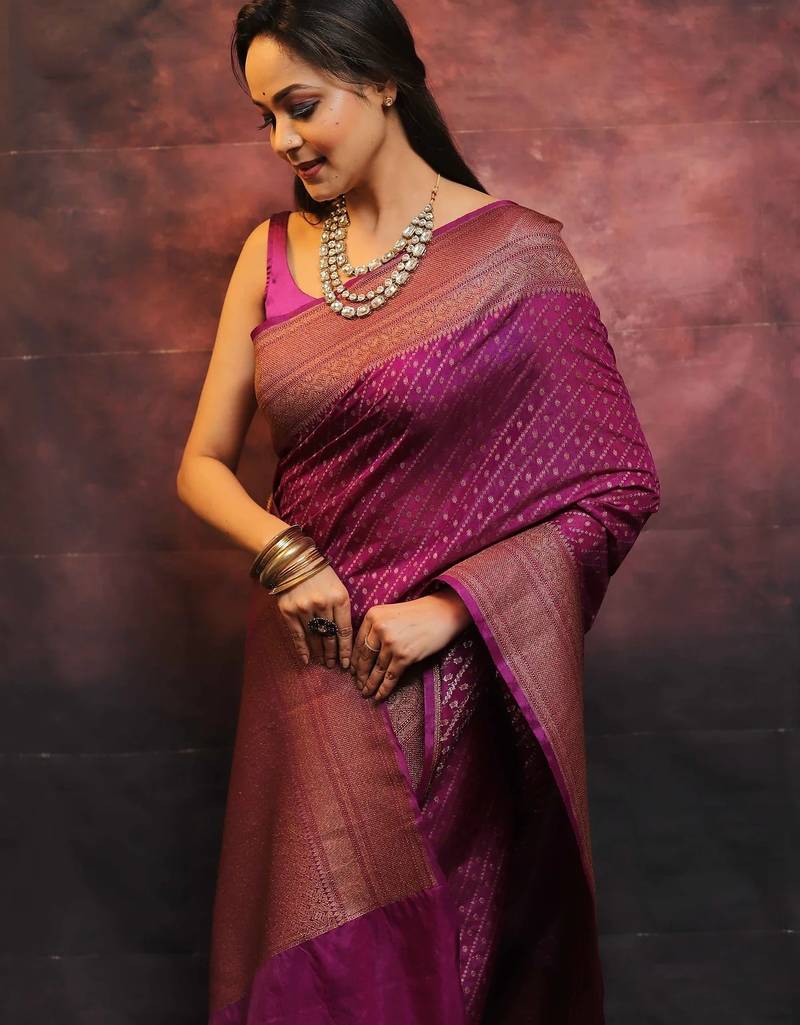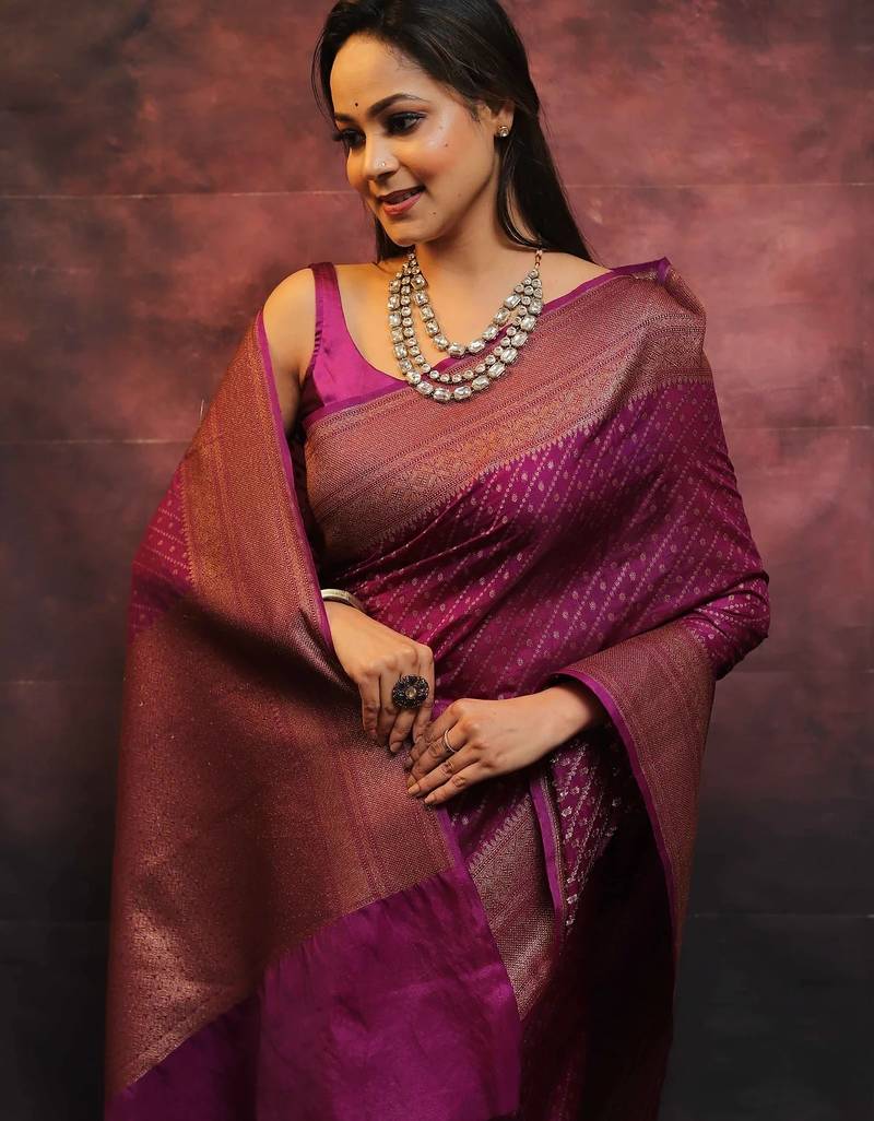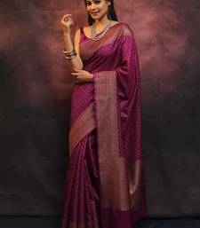 Wine soft silk blend banarasi jacuard work designer party wear saree with unstitched blouse piece