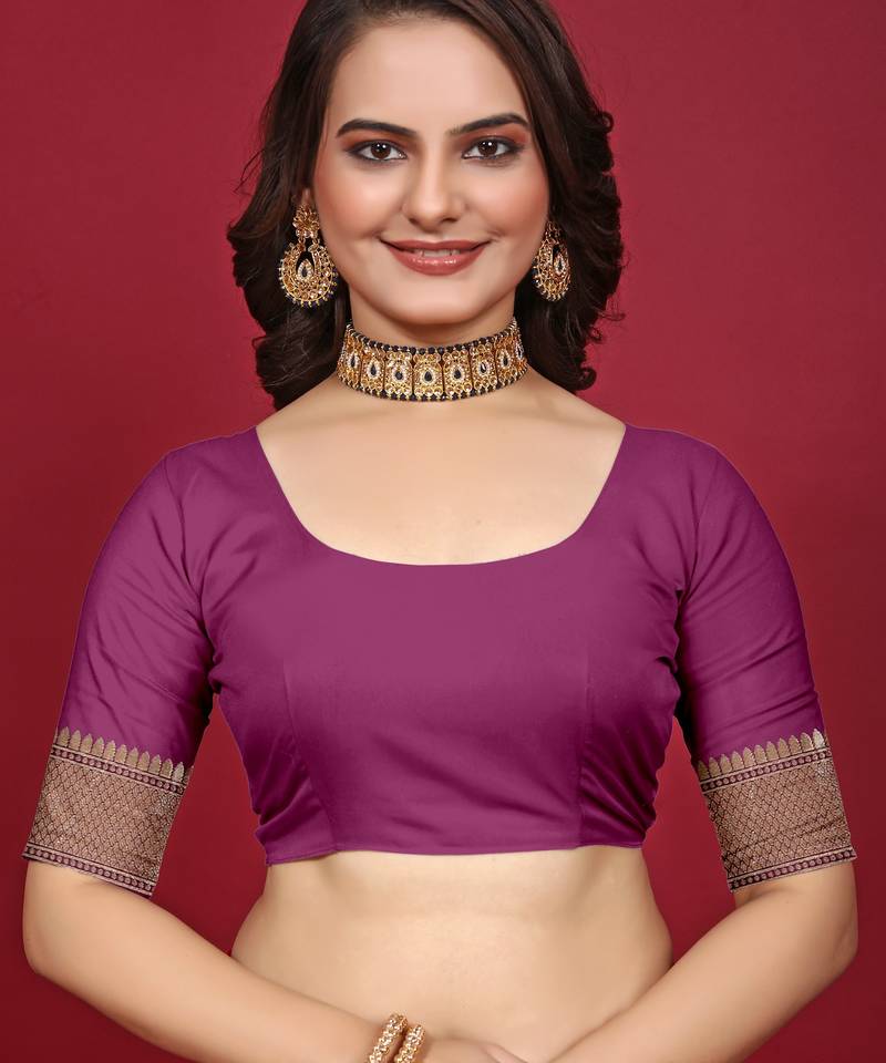 | • | Blouse | : | Color- Wine / Fabric- Banarasi Silk |