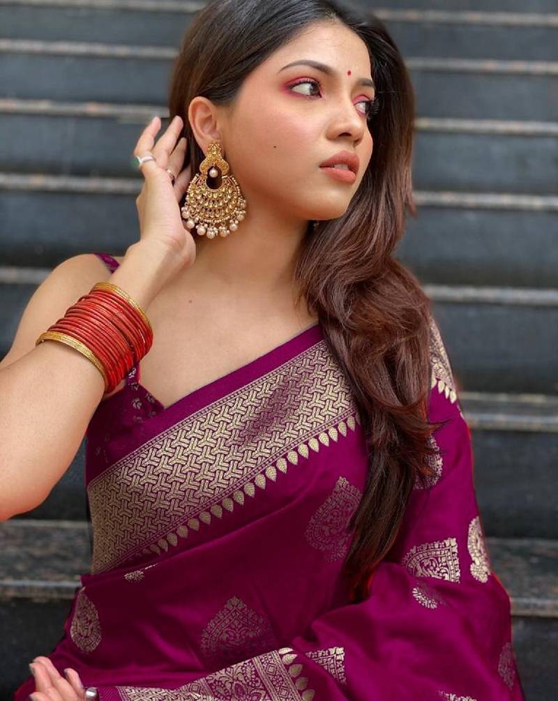 | Product Name | Wine Soft Art Silk Banarasi Jacuard Work Designer Party Wear Saree With Unstitched Blouse Piece | |
