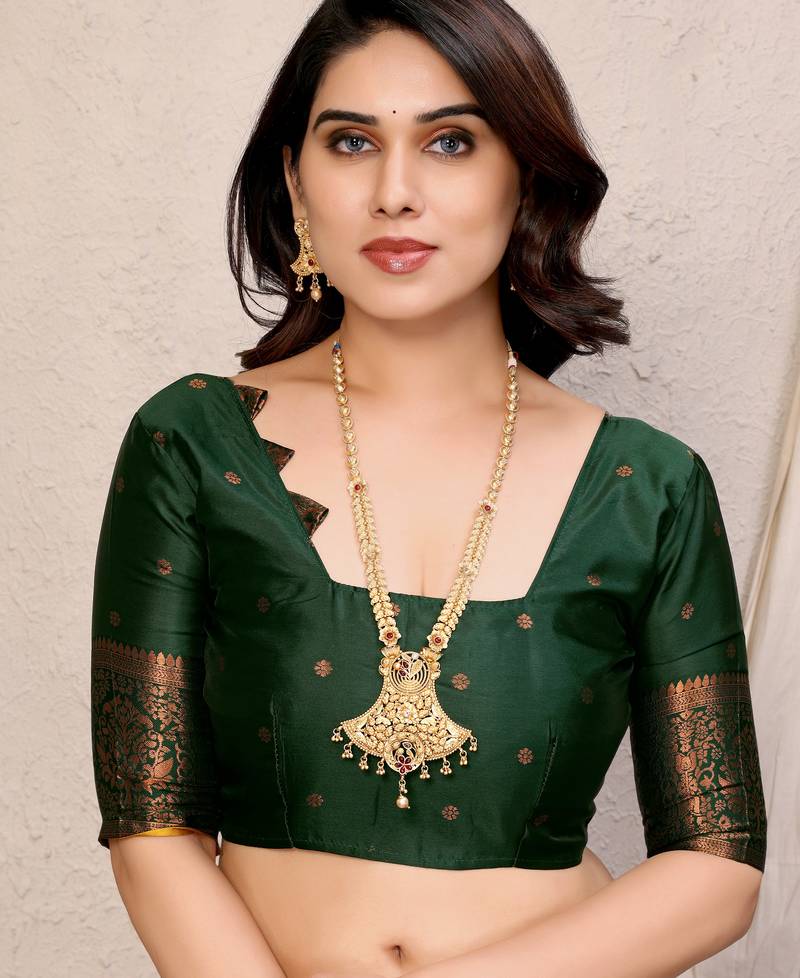 | • | Blouse | : | Color- Green / Fabric- Banarasi Silk |