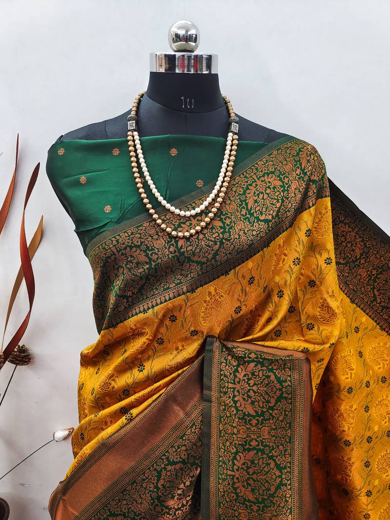 | Product Name | Yellow Green Soft Silk Blend Banarasi Jacuard Work Designer Party Wear Saree With Unstitched Blouse Piece | |