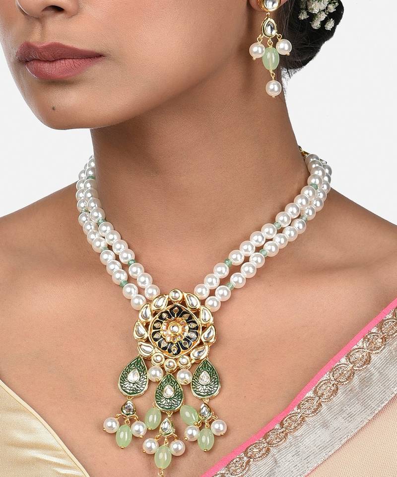 | Product Name | Gold Tone Kundan Polki And Pearl Necklace And Earrings Set | |