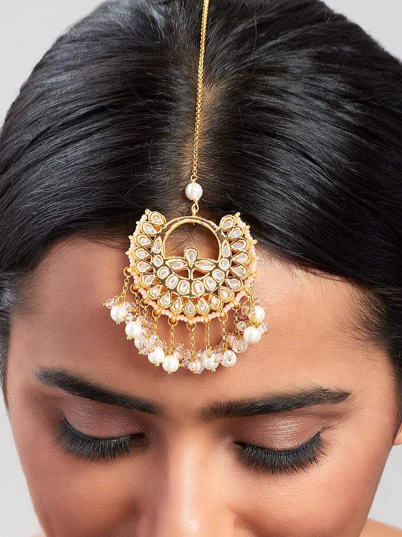 | Product Name | White & Pink Pearl Drop Kundan Polki Ethnic Maang Tikka | |