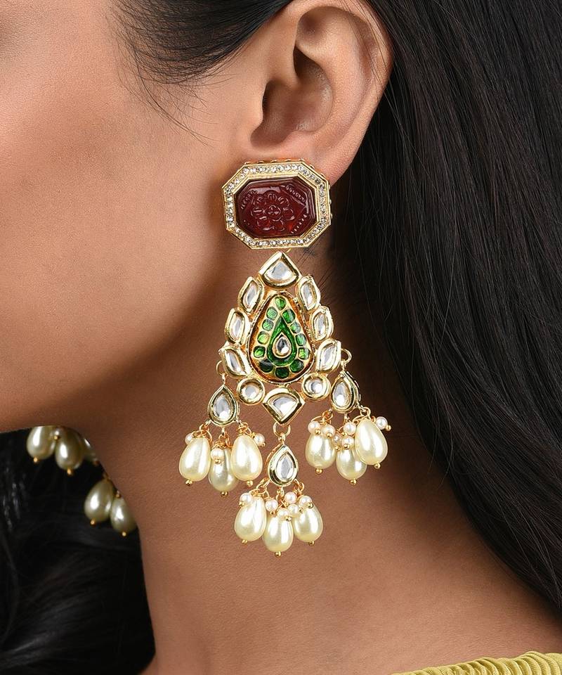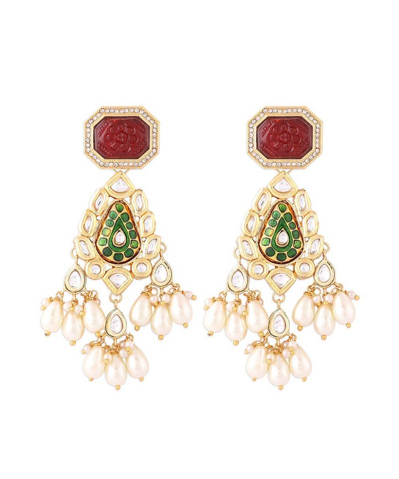 | Product Name | Multi Colour Kundan Polki Chandelier Earrings With Agates And Pearls | |