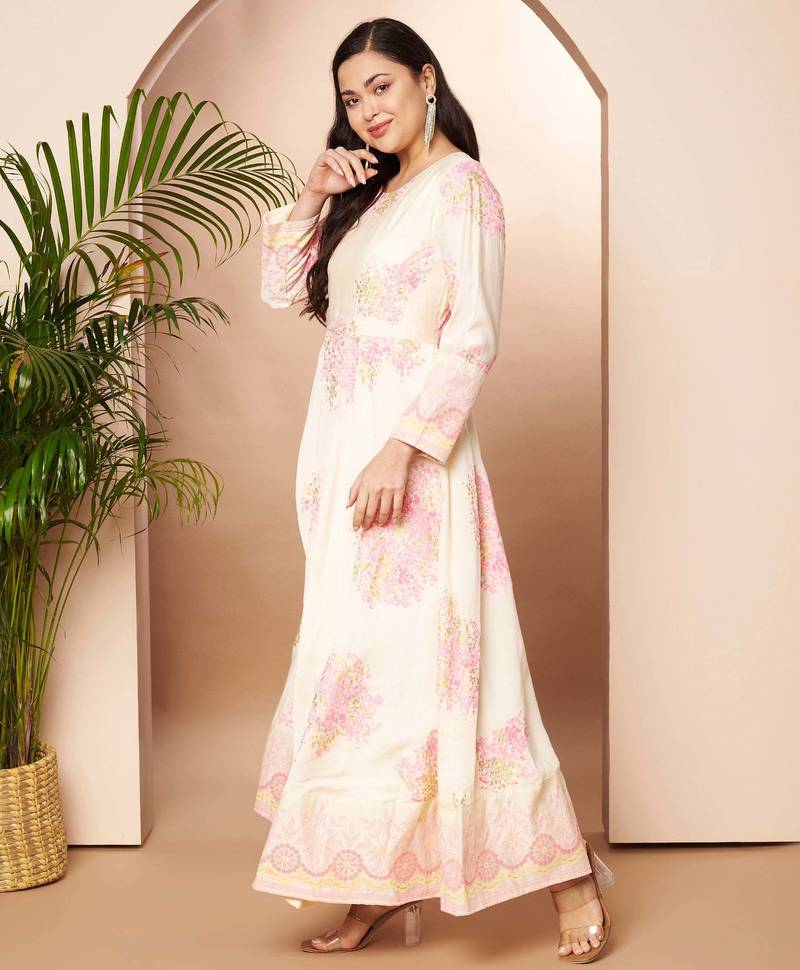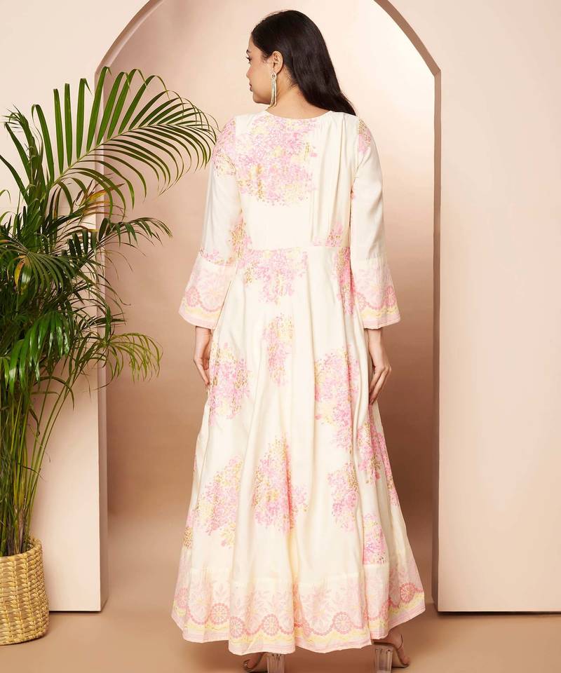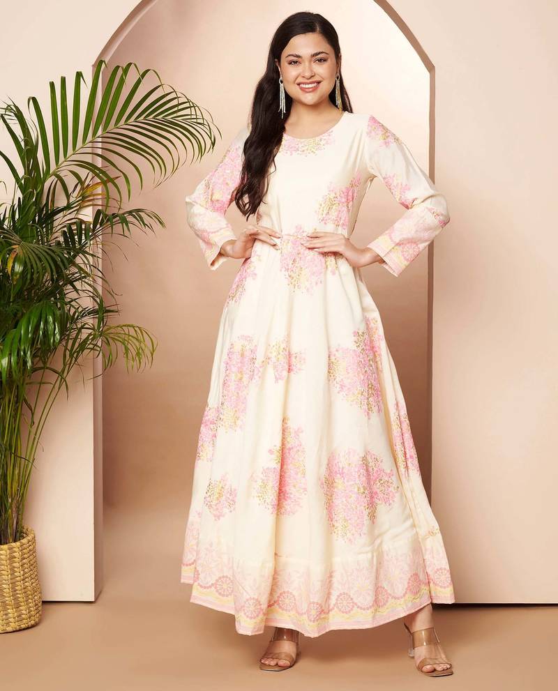 | Product Name | Off White Printed Poly Silk Ethnic Dresses | |