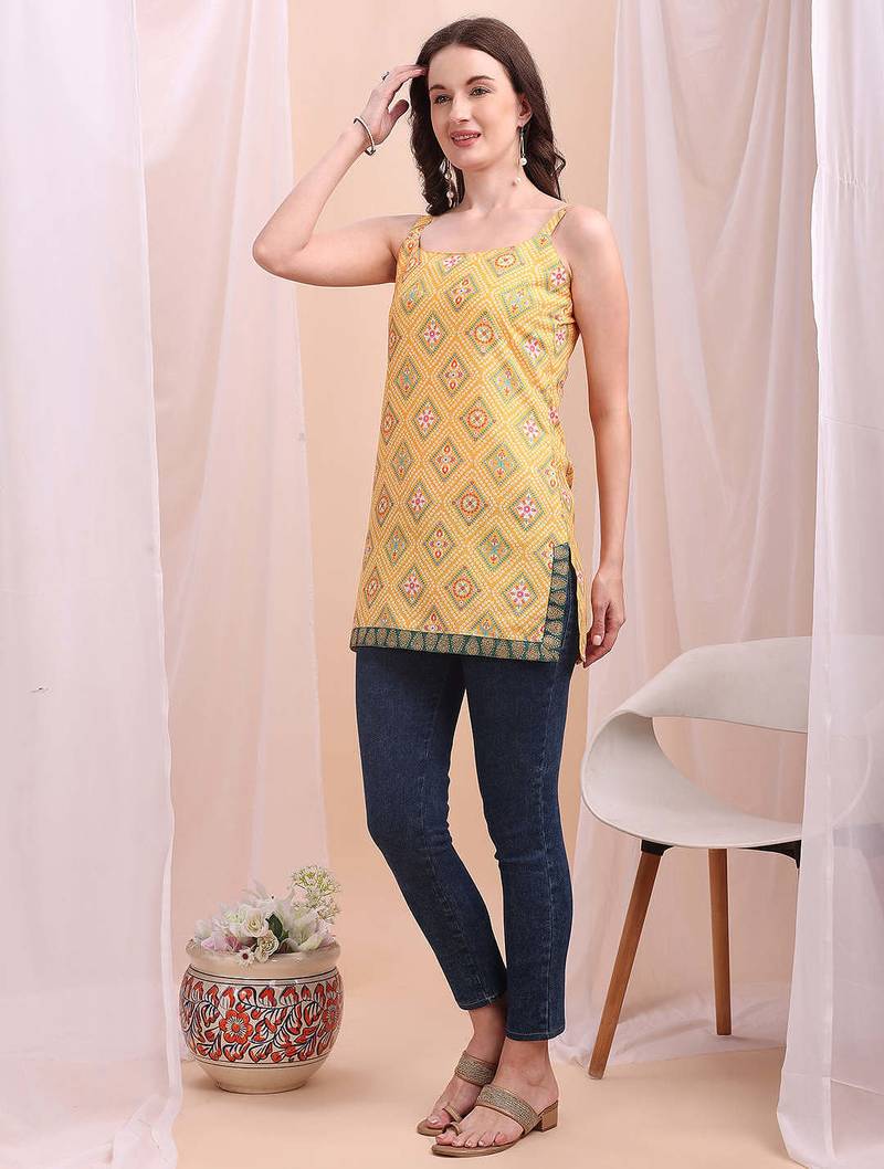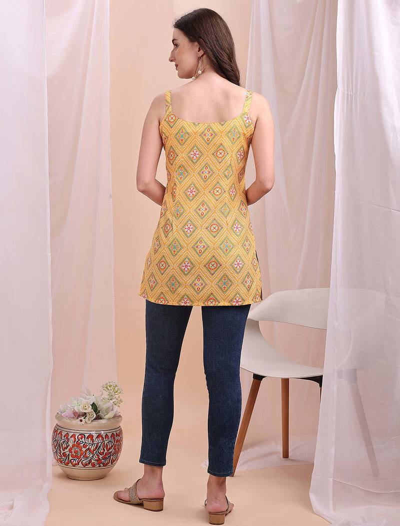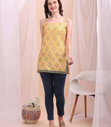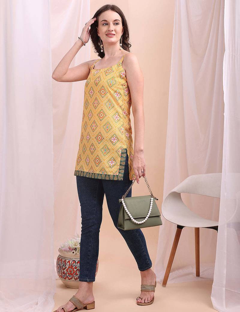 Yellow printed poly silk tunics