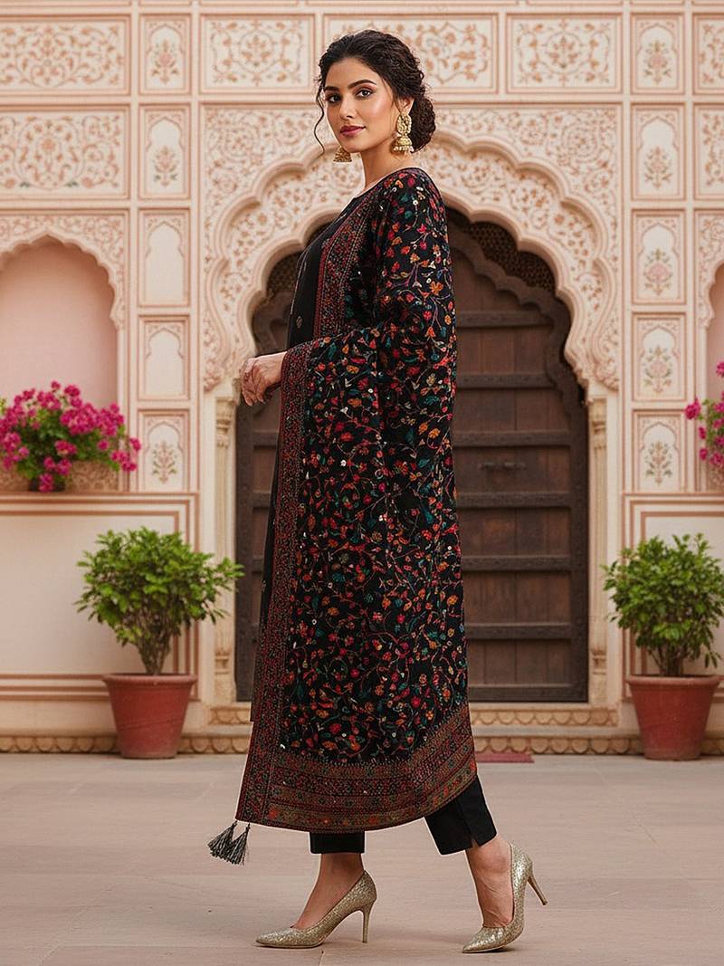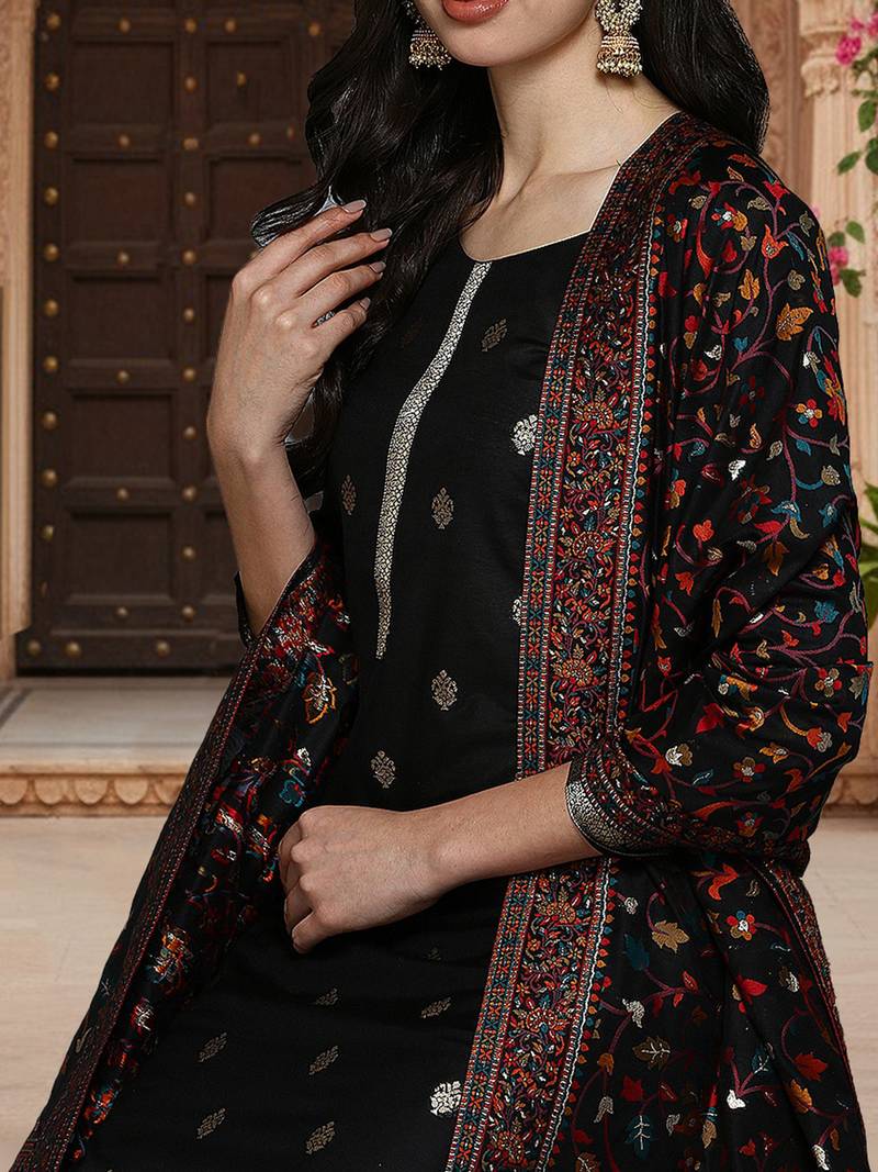 Product Name | Black Color Woven Design Silk Blend Styles Kurta Trouser With Dupatta | |