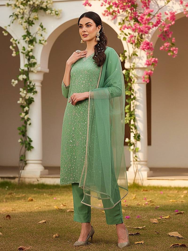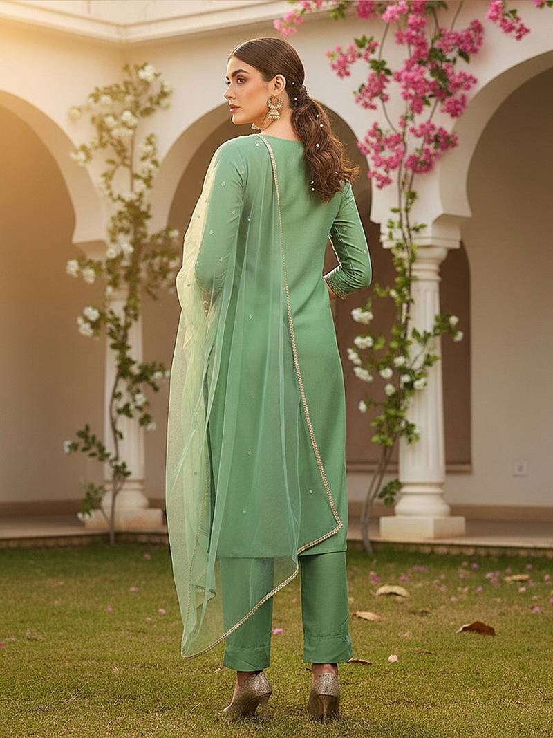 | Product Name | Women Green Silk Blend Solid Embroidered Straight Kurta Pant With Dupatta | |