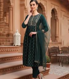 | Product Name | Women Green Silk Blend Solid Woven Design Flared Empire Kurta Pant With Dupatta | |