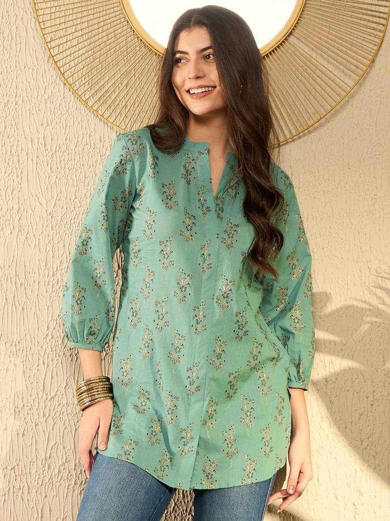 | Product Name | Women Sea Green Cotton Blend Floral Printed Regular Tunic | |