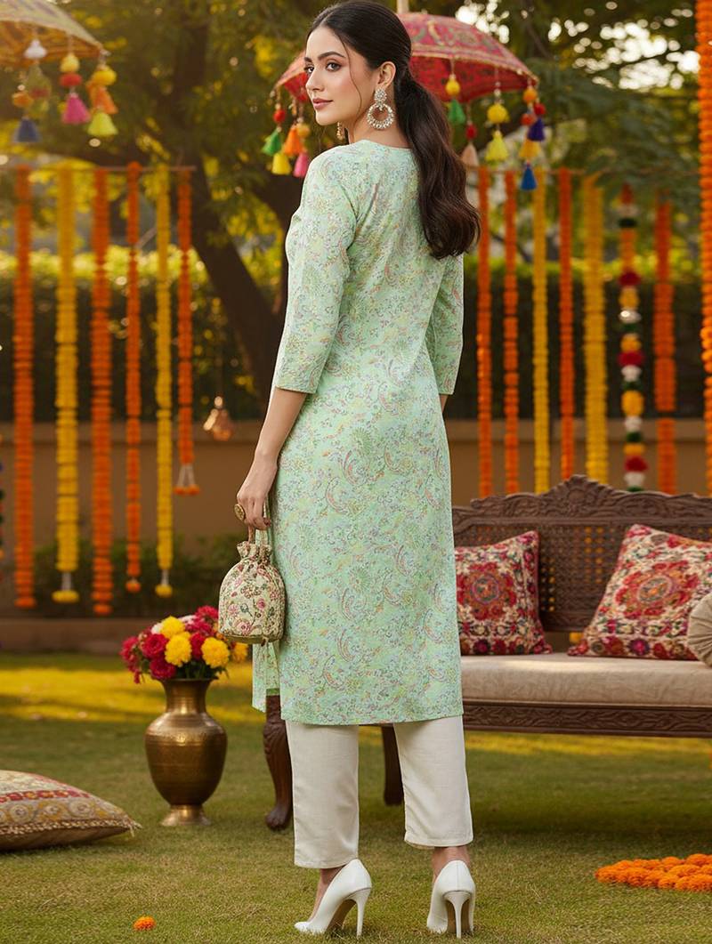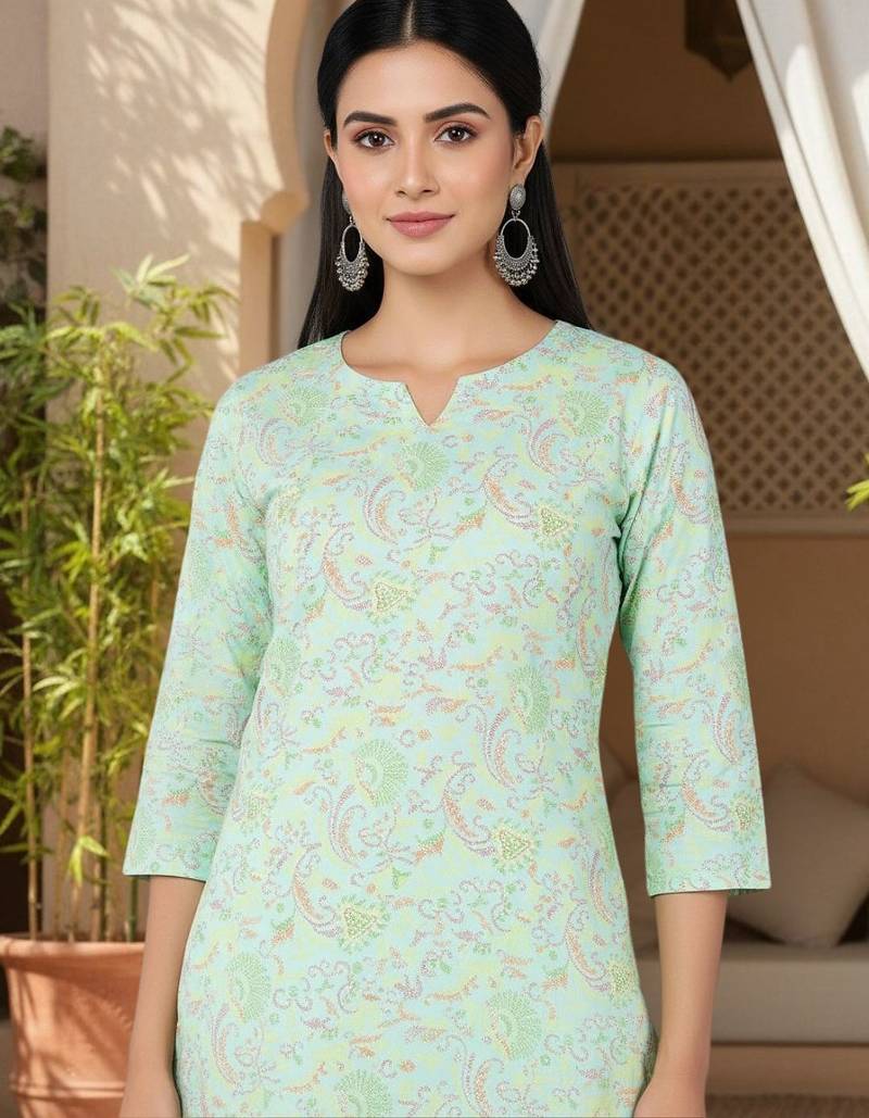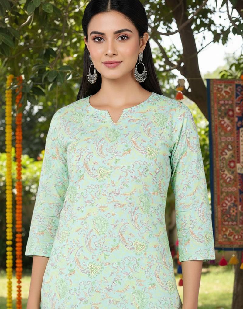 | Product Name | Women Sea Green Cotton Kalamkari Printed Straight Kurta | |