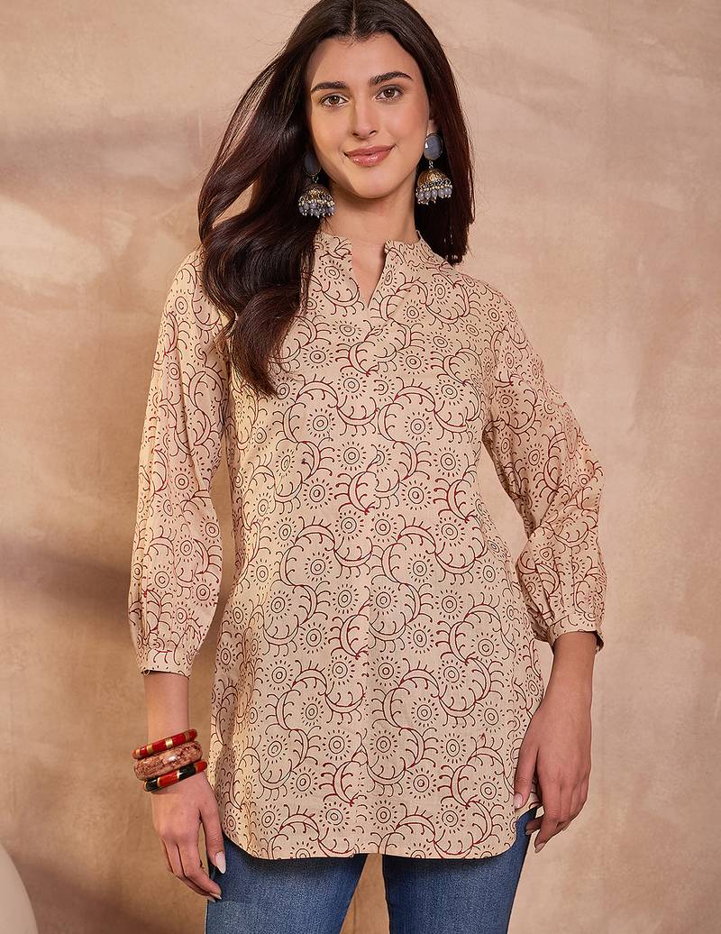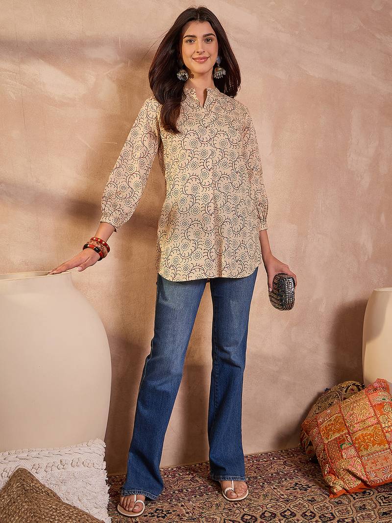 | Product Name | Women Beige Ethnic Motifs Printed Cotton Tops | |