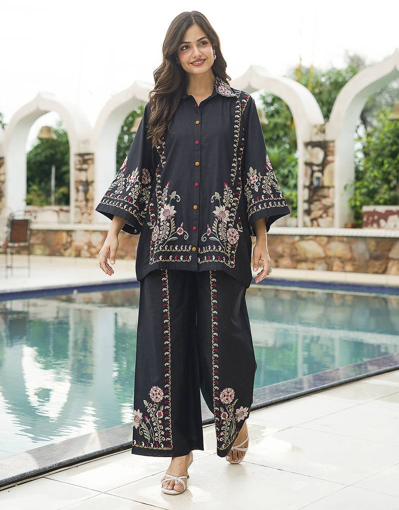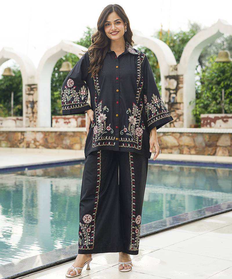 Product Name | Women Black Pure Cotton Solid Embroidered Coord Sets | |