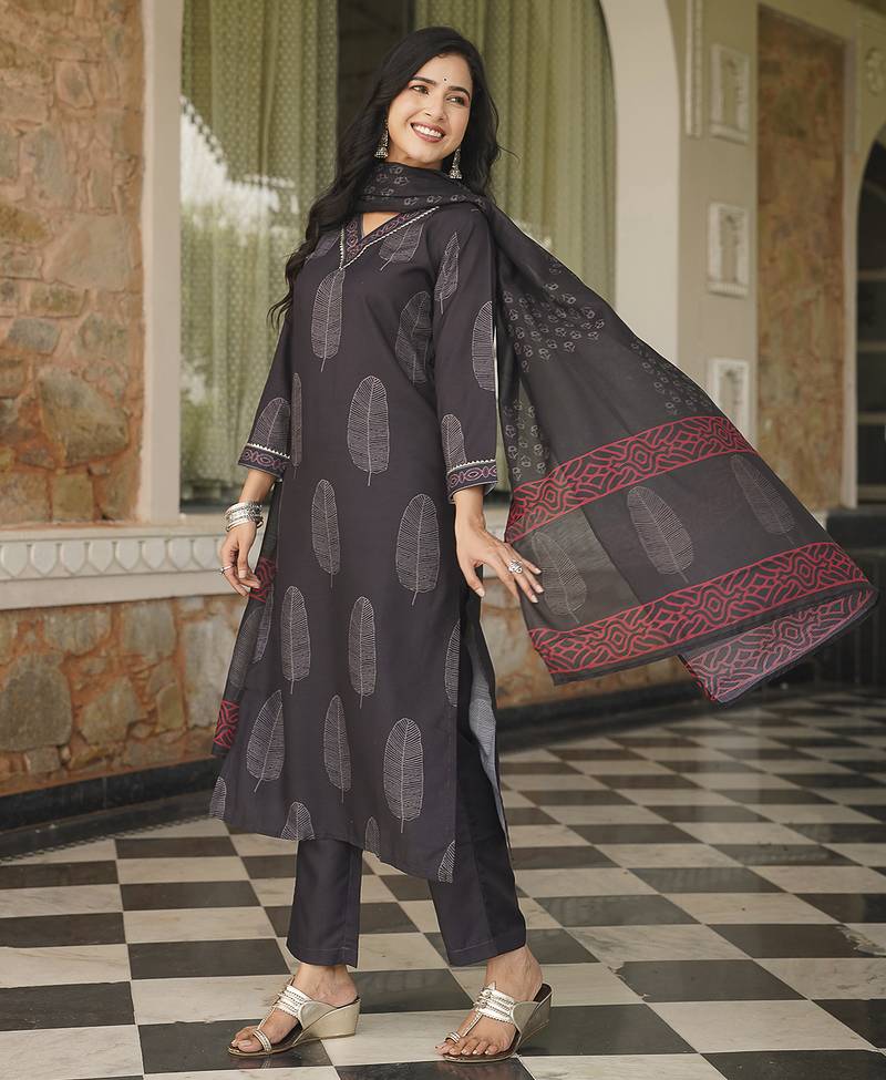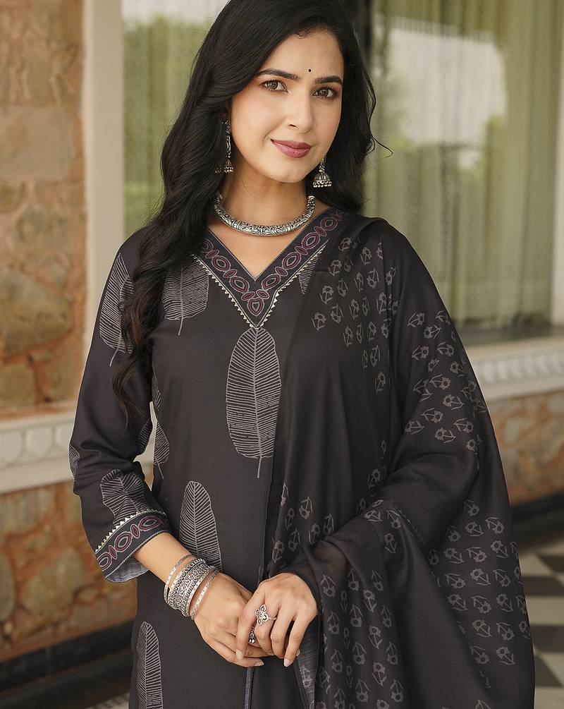 Product Name | Women Black Rayon Blend Floral Printed Straight Kurta Trousers With Dupatta | |