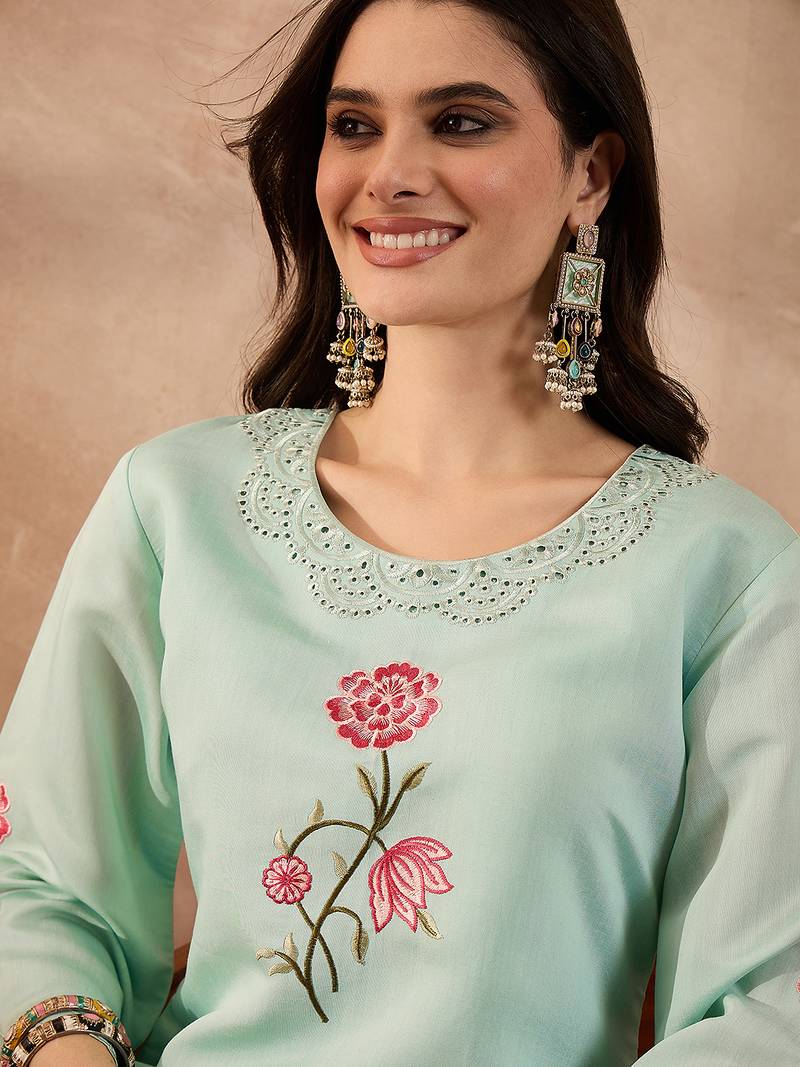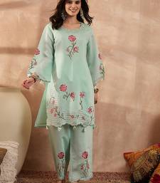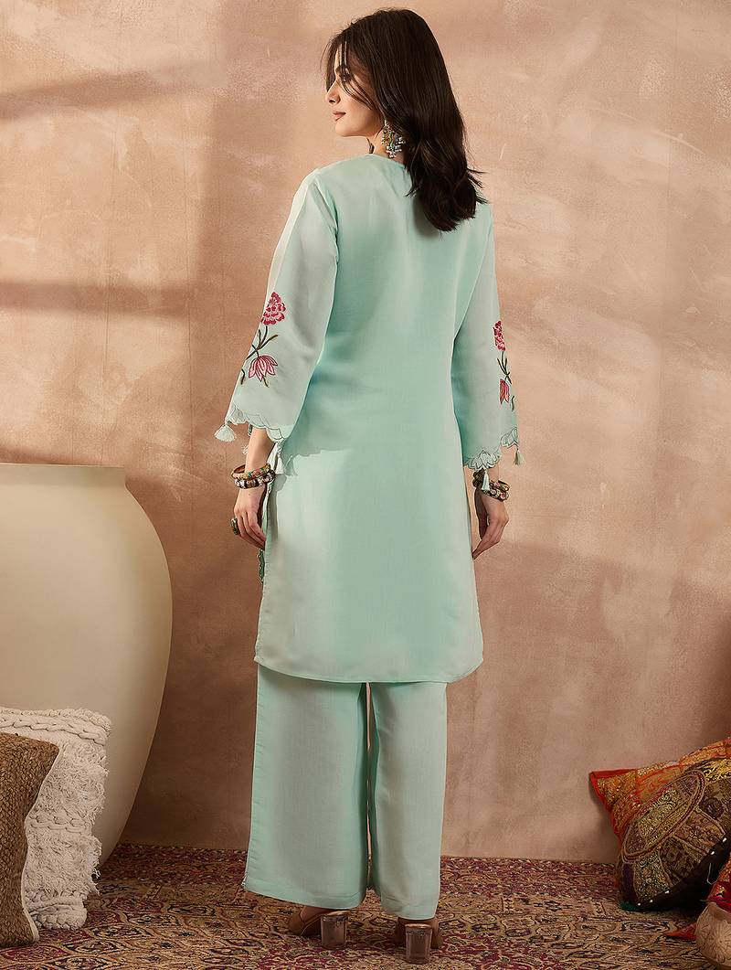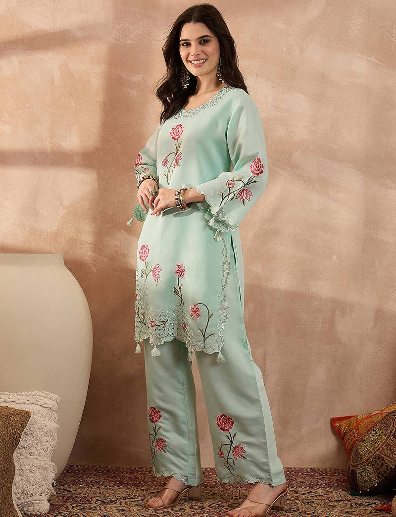 | Product Name | Women Blue Silk Blend Embroidered Scalloped Coord Sets | |