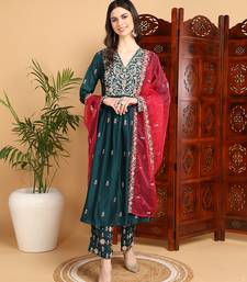| Product Name | Green Silk Blend Solid Yoke Design A Line Kurta Trousers With Dupatta | |