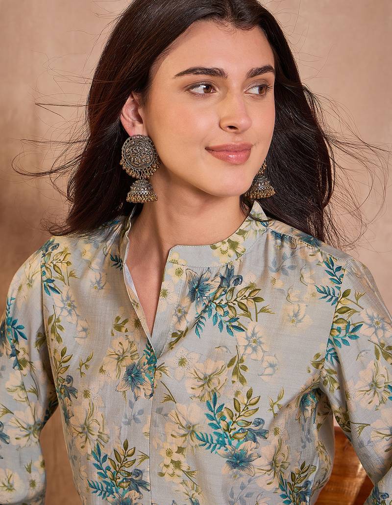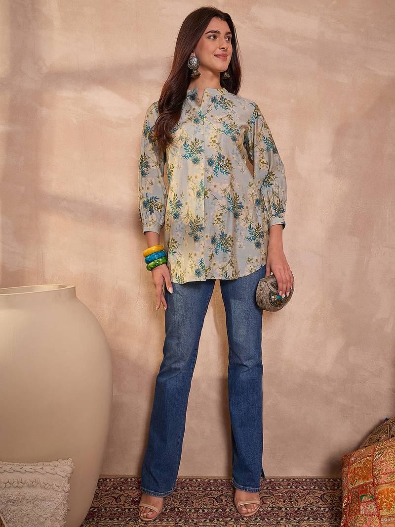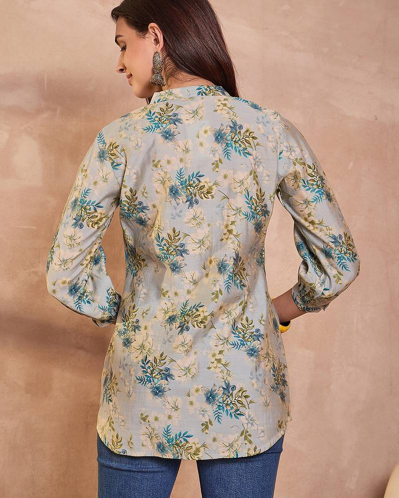| Product Name | Women Grey Floral Printed Silk Blend Tops | |