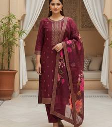 | Product Name | Women Maroon Silk Blend Ethnic Motifs Stoning Straight Kurta Trouser With Dupatta | |