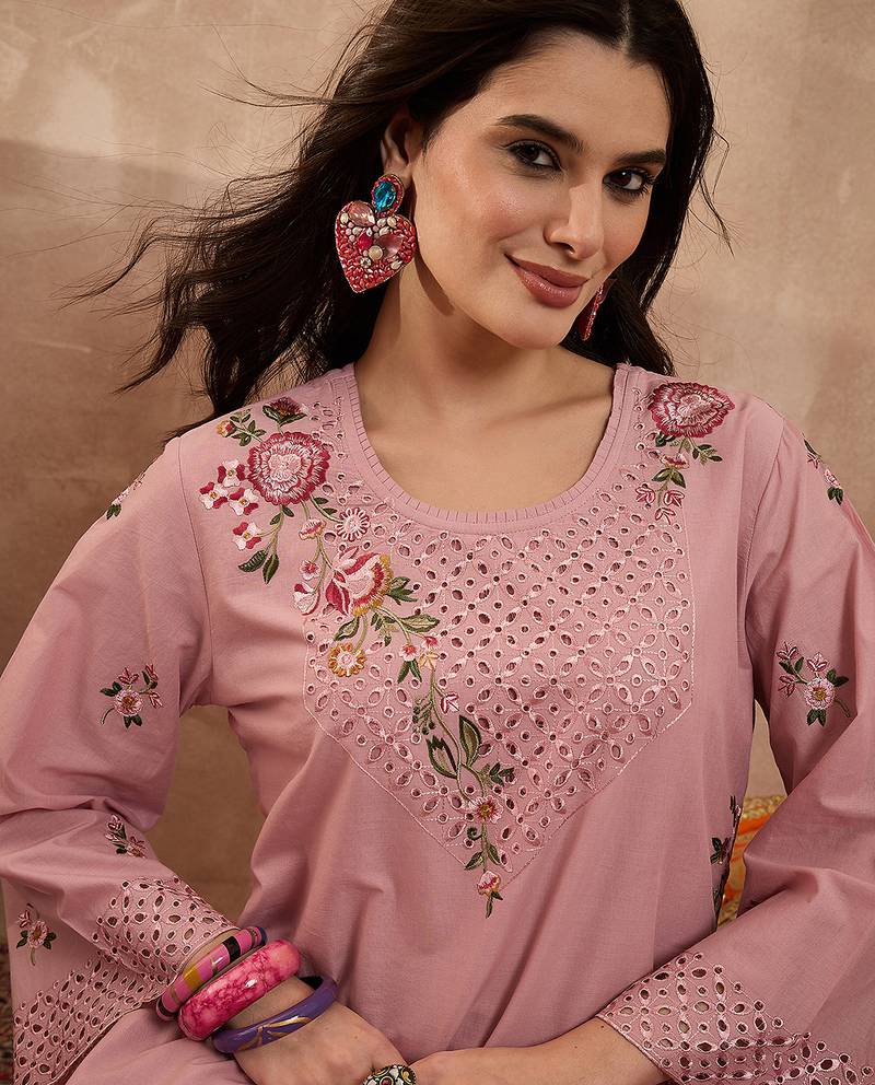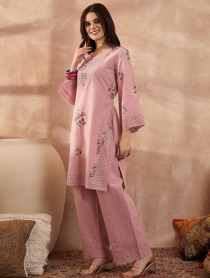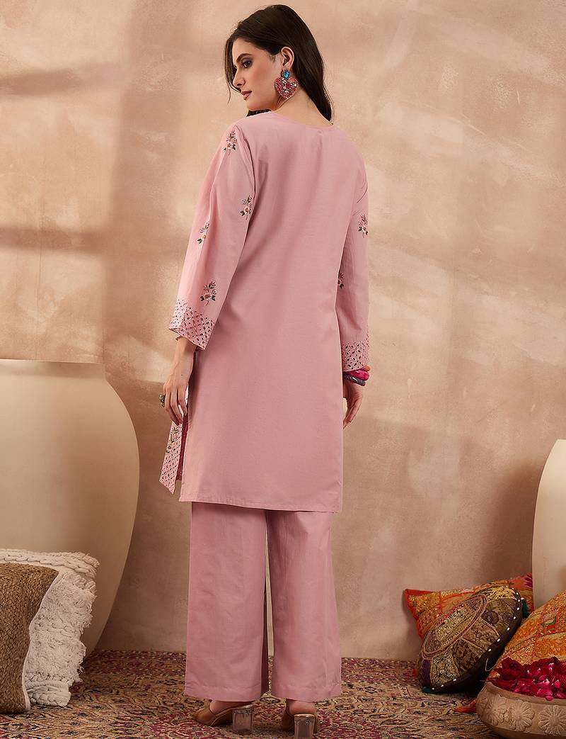 | Product Name | Women Pink Pure Cotton Embroidered Straight Coord Sets | |