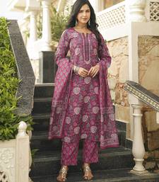 Women pink rayon blend floral printed straight kurta trousers with dupatta