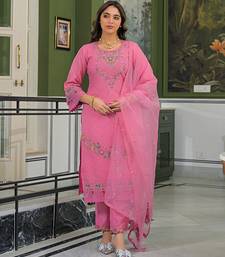 Women pink viscose embroidered straight kurta trousers with dupatta