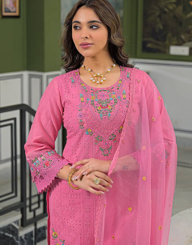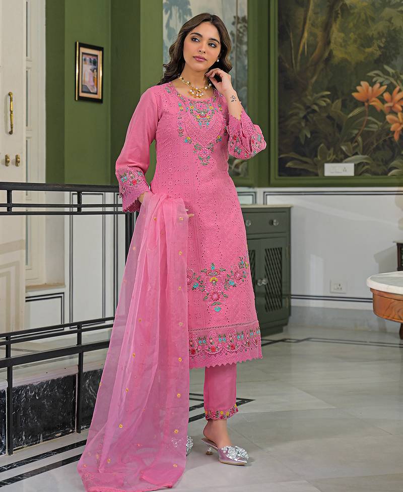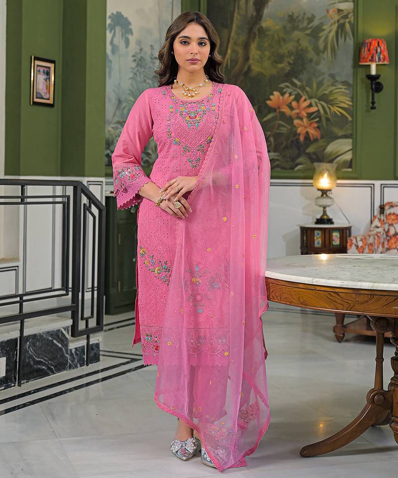 | Product Name | Women Pink Viscose Embroidered Straight Kurta Trousers With Dupatta | |