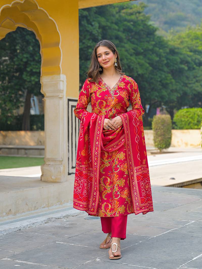 | Product Name | Women Pink Viscose Rayon Floral Printed Straight Kurta Trousers With Dupatta | |