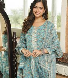 Product Name | Women Turquoise Blue Rayon Blend Floral Printed Straight Kurta Trousers With Dupatta | |