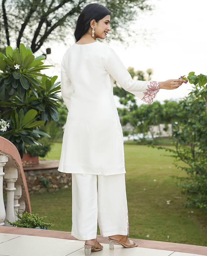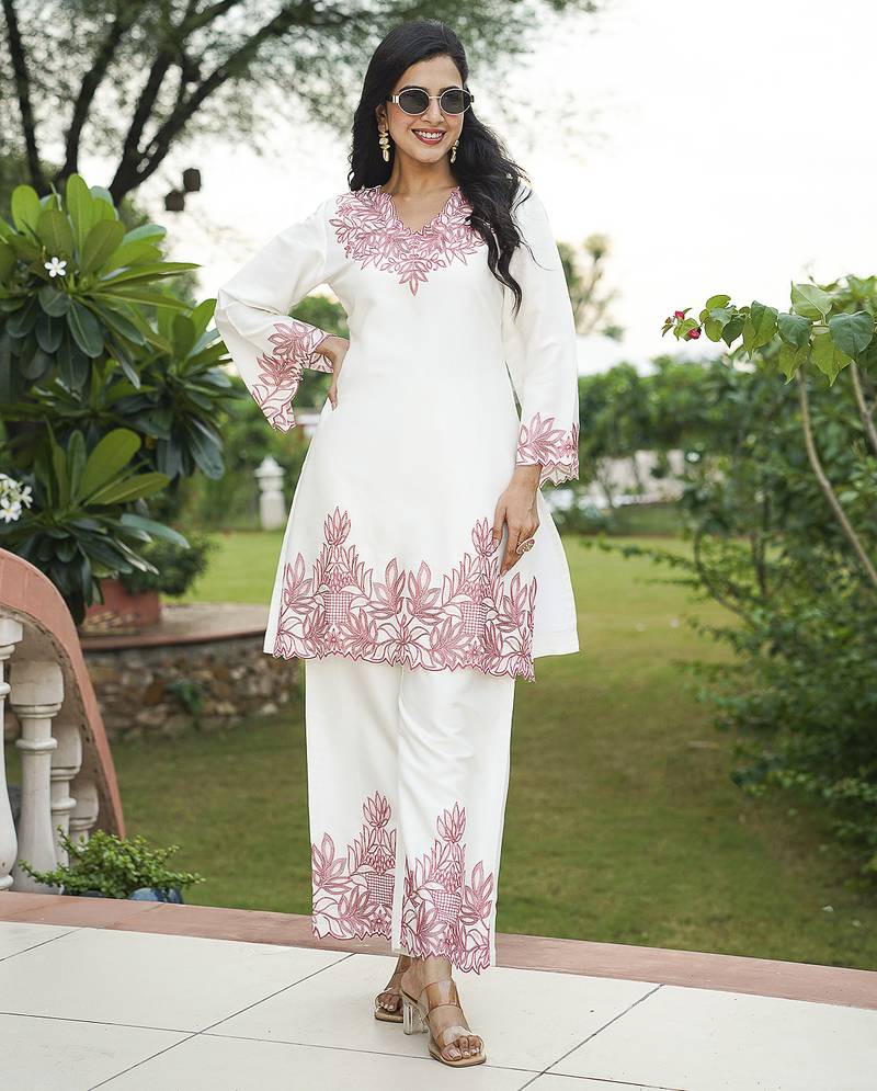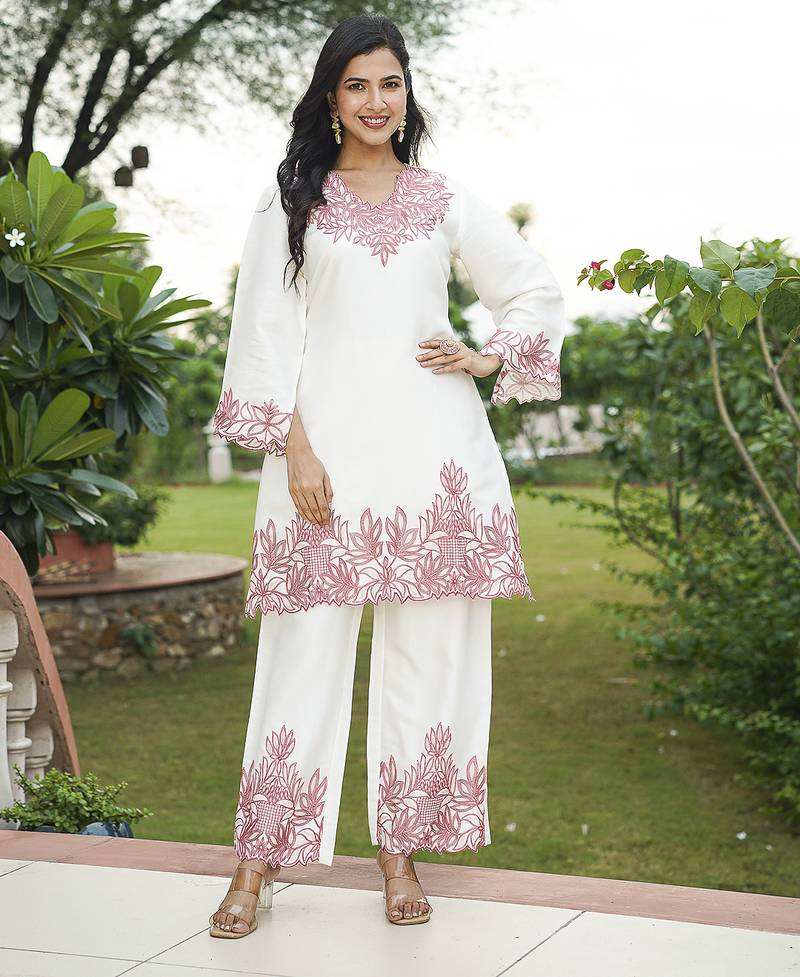 Product Name | Women White Silk Blend Solid Embroidered Coord Sets | |